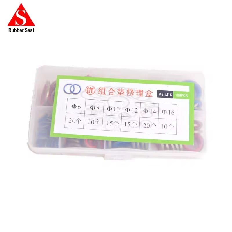 100 pieces of metallic bonded oil washer in black NBR zinc metal compound washer assortment box.
