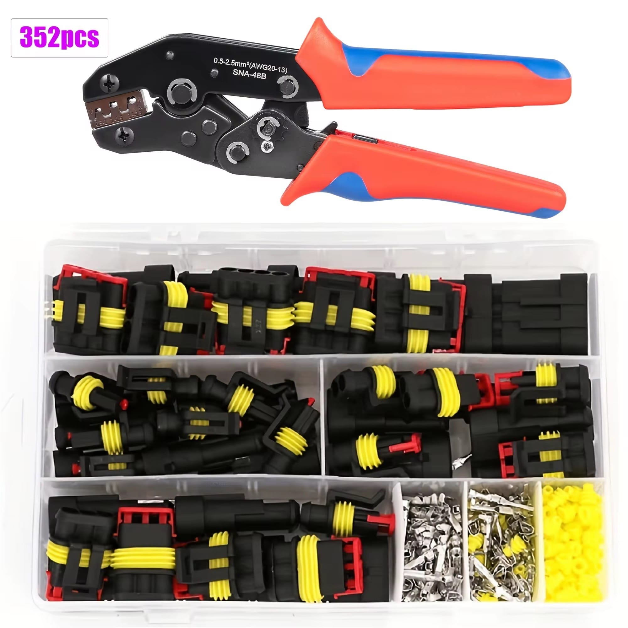 A Set of 352 Automotive HID Connector Plugs Including SN-48B Crimping Pliers, 1/2/3/4 Pin Wire Harness Connectors, Featuring a Durable Rust-Resistant Sealing Design, Suitable for Secure Connections in Cars And Trucks