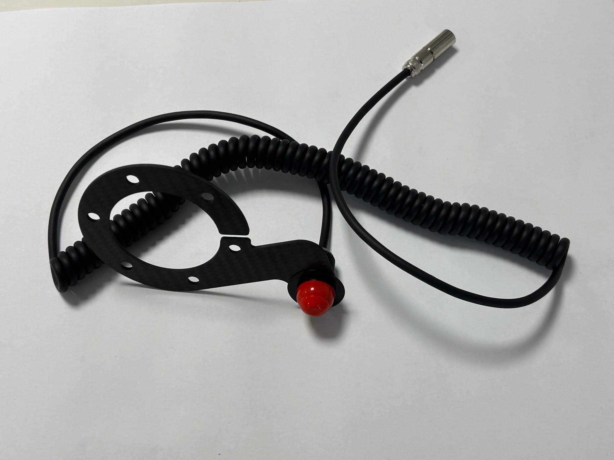 Comes with red button but second picture shows flexi PTT steering wheel mount attached (not included)